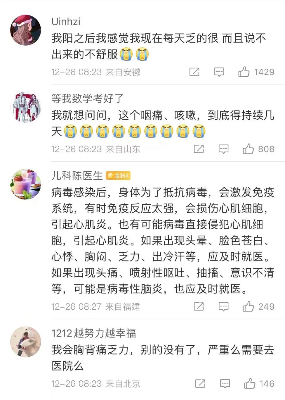 近日,疫情管控放开后,不少人被感染成了“阳过”。康复后会不会留下肺部纤维化、味觉和嗅觉功能减退等后遗症?这些天,我们很多人和新冠肺炎切切实实过招后,都有一个很明显的感受:历经高烧之后,体温虽然正常了,但身体各个器官还非常脆弱,整个人有种前所未有的疲惫感和不适感。这样一想,就明白为啥老年人和患有基础疾病的人,感染后境遇非常凶险了。假如,你身体原本病灶就比较多,病毒就使劲儿进攻你的脆弱部分,那部分被攻陷,导致你整个免疫系统都瘫痪了。 近期部分奥密克戎轻症病例显示,大部分病人5到7天就可以核酸转阴,七天以上转阴的只有10%。而重症意味着引起死亡的潜在可能,包括基础病的加重(如肿瘤、脑出血、脑梗、肝硬化、尿毒症等)。“我们也看到大量病人的重症确实是由于病毒性肺炎造成,多发生在脆弱人群,比如65岁以上老人、肥胖、合并基础疾病、肿瘤、免疫缺陷等,但最可怕的是,没有明显基础病的病人,也可以引起奥密克戎病毒性肺炎。”在曹彬分享的四个奥密克戎病毒性肺炎病例中,就有一位50岁无明显基础疾病的男性,还有一位48岁男性接种过三针疫苗,但有肥胖和十年高血压病史。