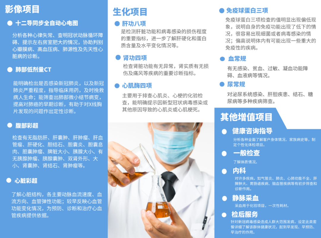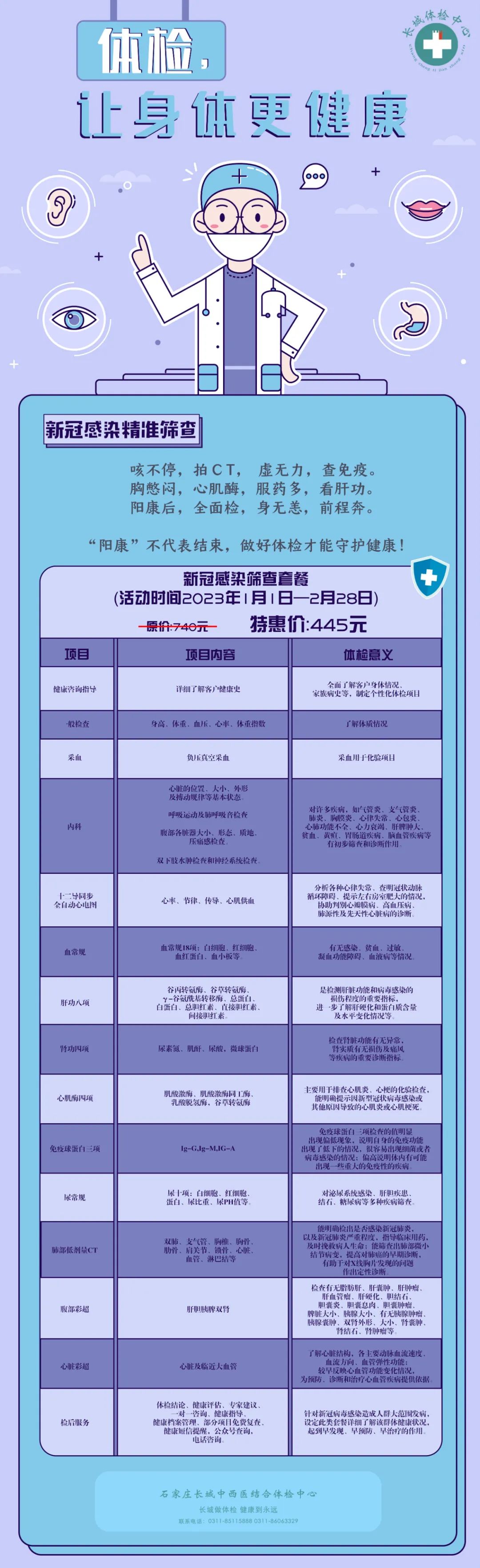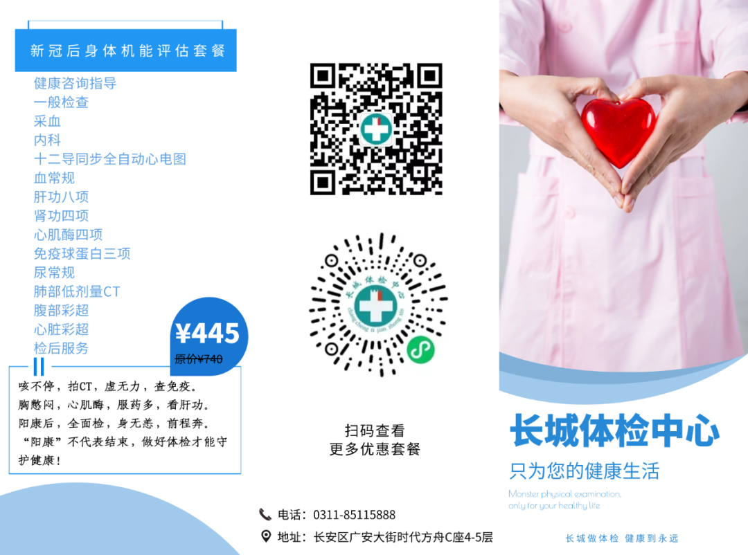 在阳性高峰期过后,建议患者可以带上全家人来做一次健康体检。通过体检,不仅能够全面掌握身体状况,有方向的提高自身免疫力,还能避免二次感染,做到早发现、早诊断、早治疗。
